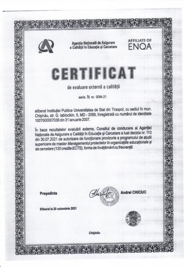 - Managementul proiectelor în organizațiile educaționale și de cercetare (120 credite ECTS), 20.10.2021
